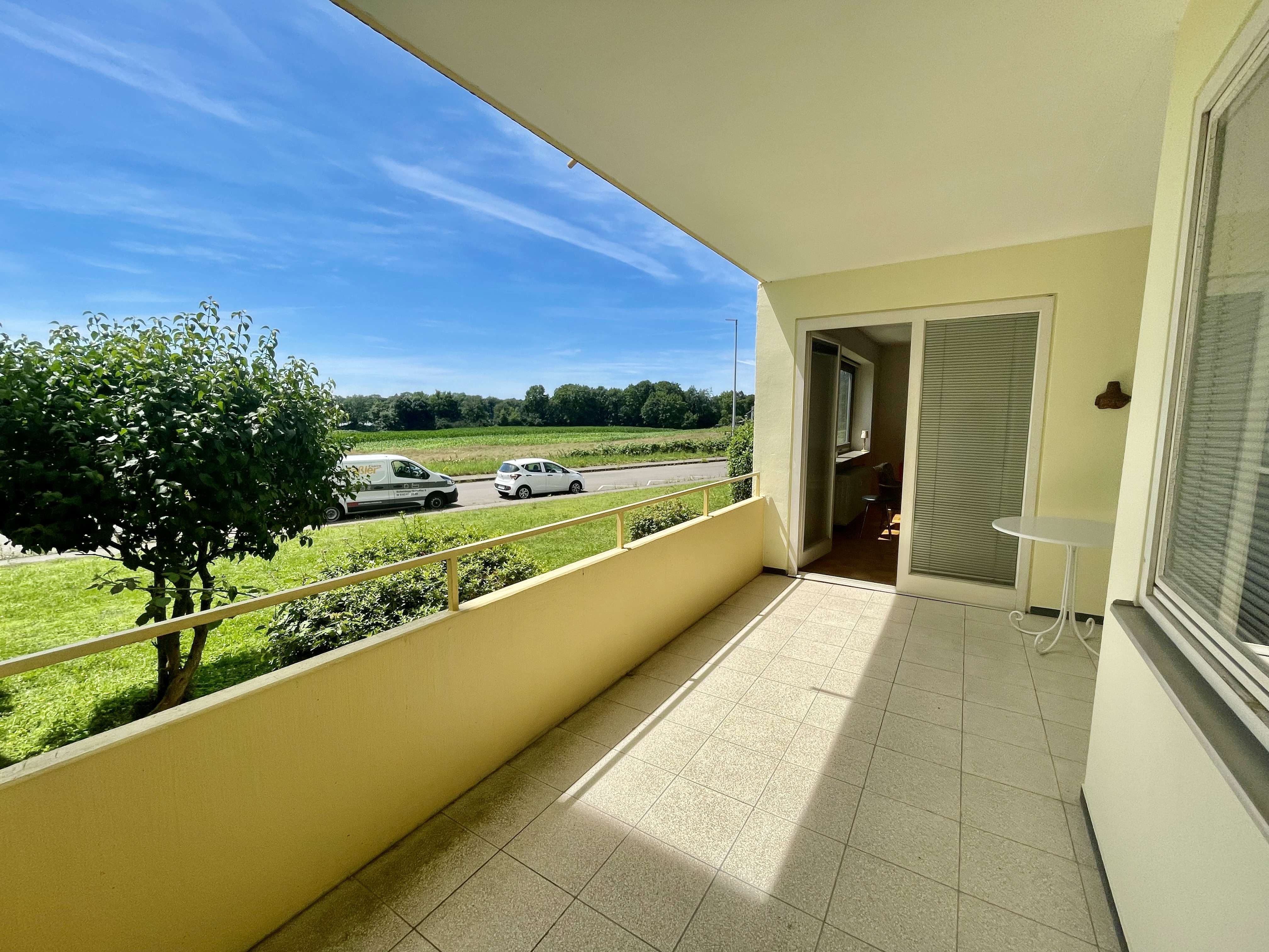Der einladende Balkon liegt in S/W Richtung. Hier genießt man die Sonne und die unverbaubare Aussicht auf das Schweizer Bergpanorama